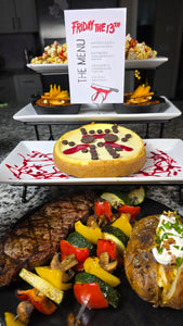 Whether it's Cheesecake at Camp Crystal Lake or Bloody Good Popcorn, we include playful, photo-worthy details that make your table feel straight out of the story.